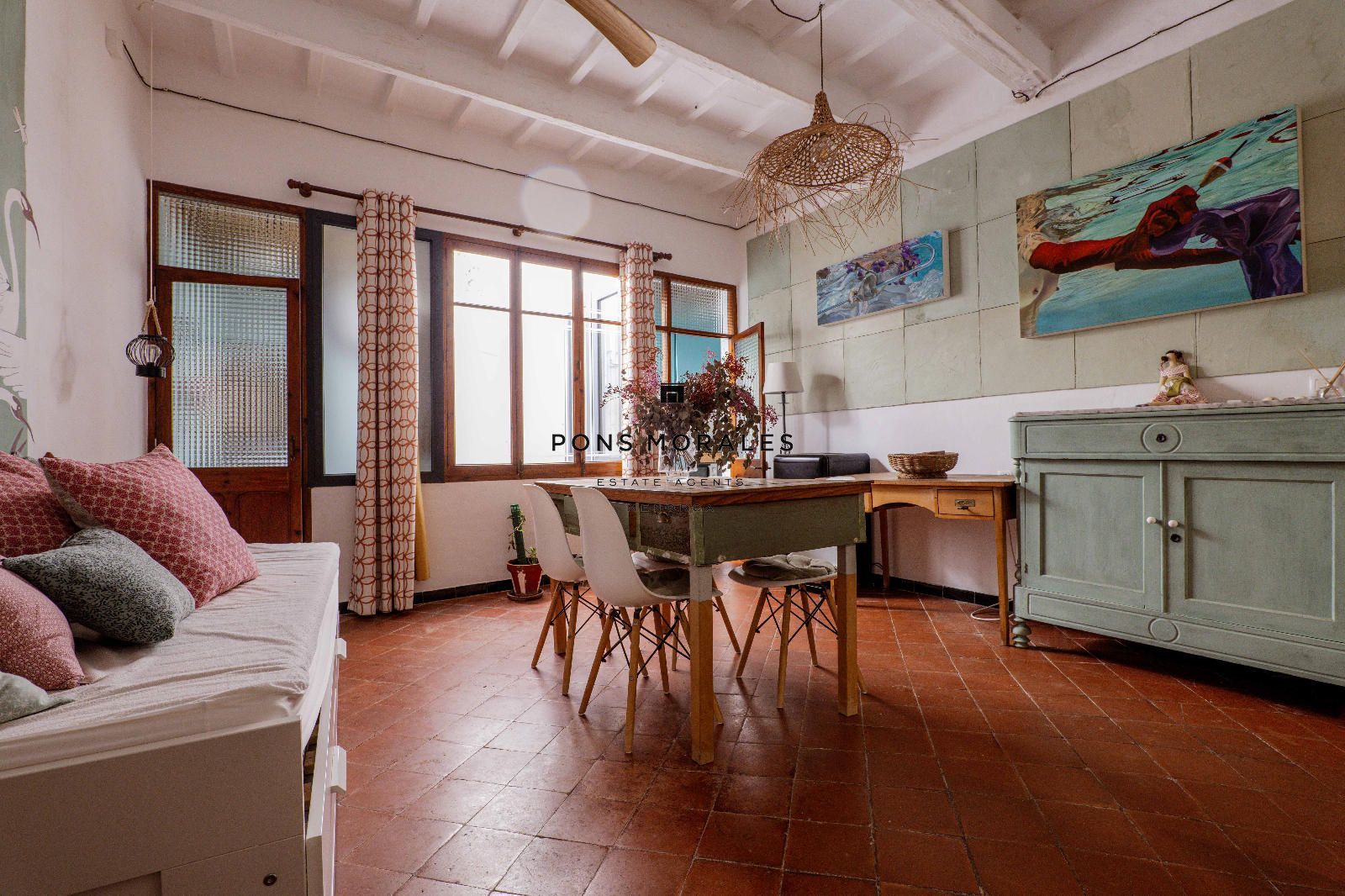 When art is present in a house, the house itself becomes art. From the basement to the roof terrace, the future owners will be able to see the charm of this house located in the Old Town of Ciutadella thanks to its stairs and walls full of life.