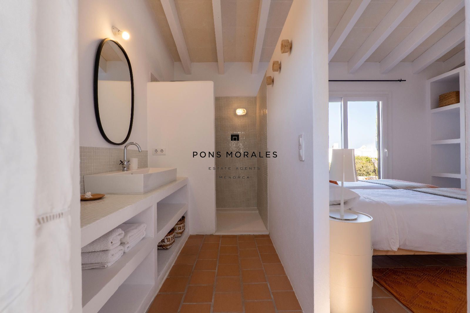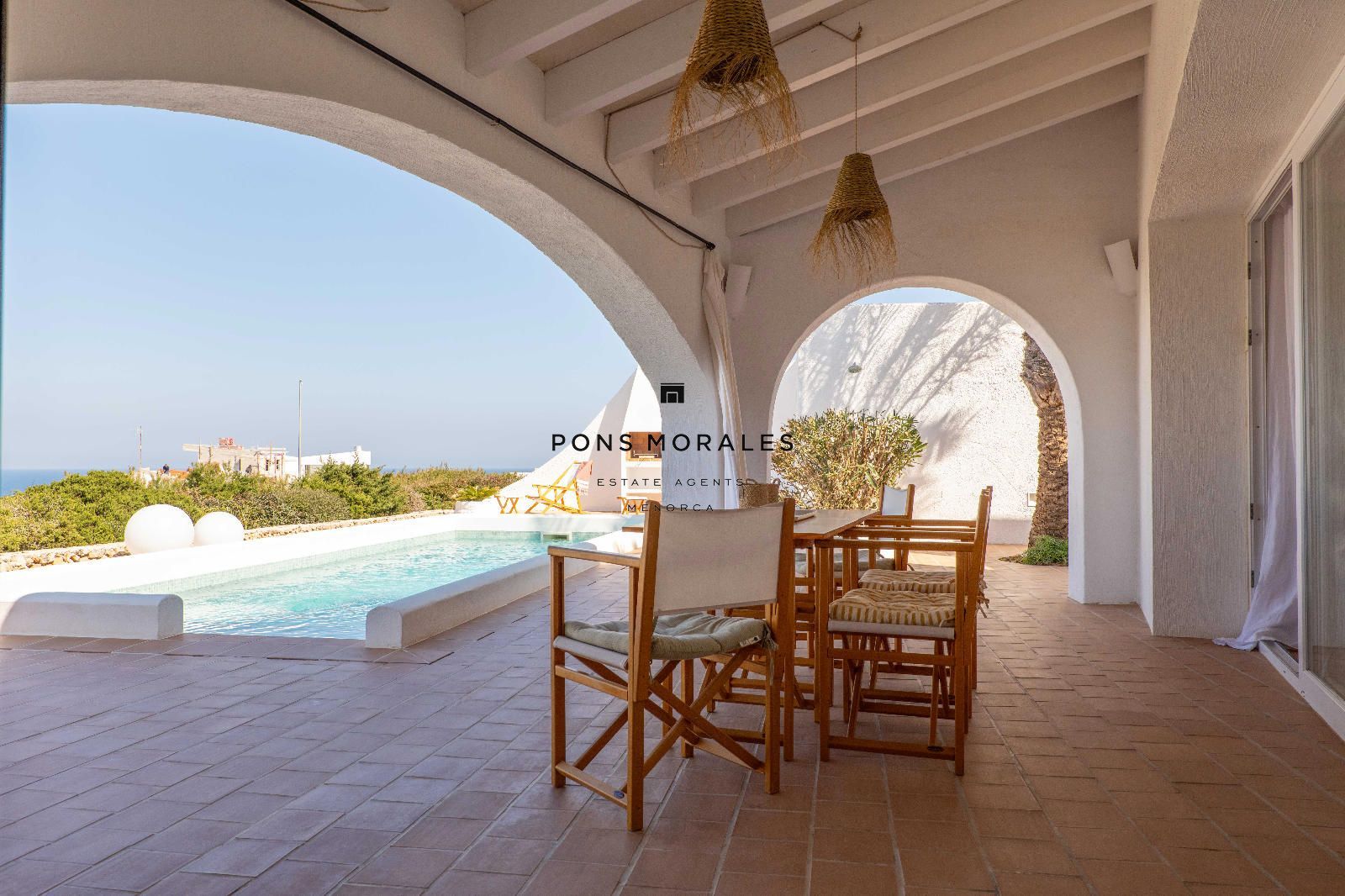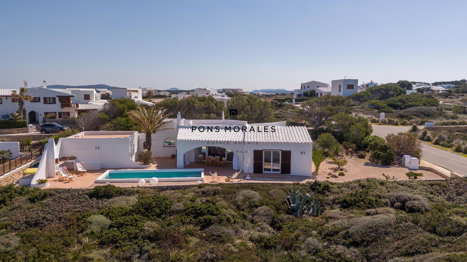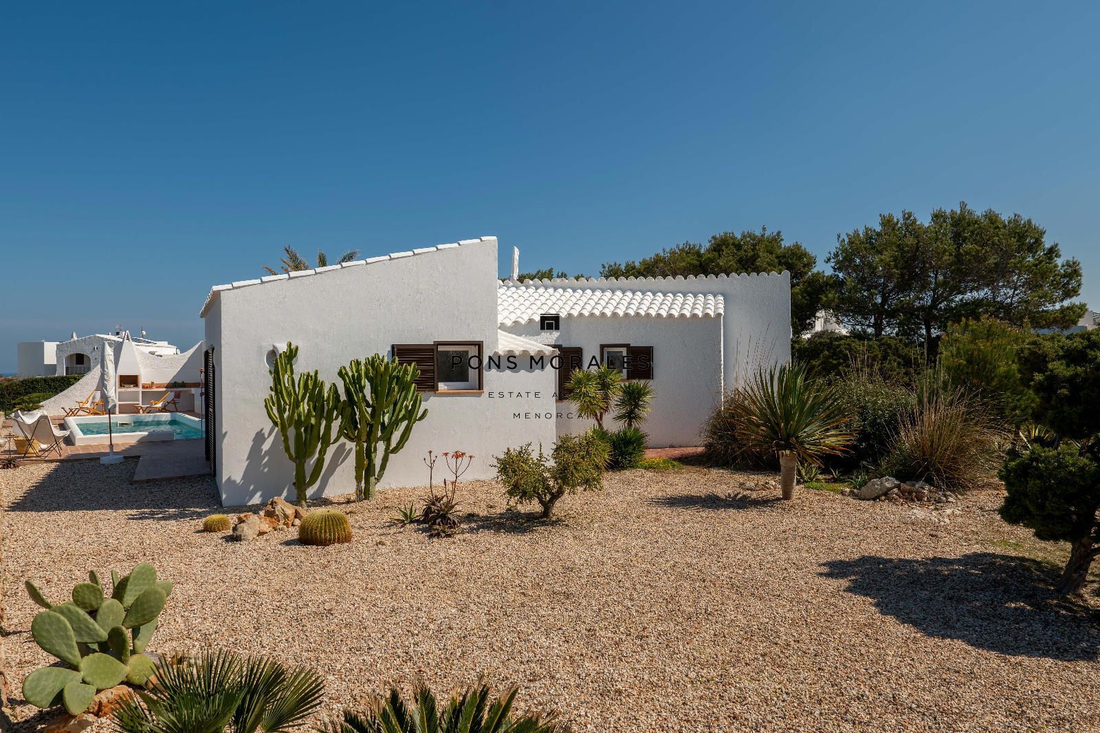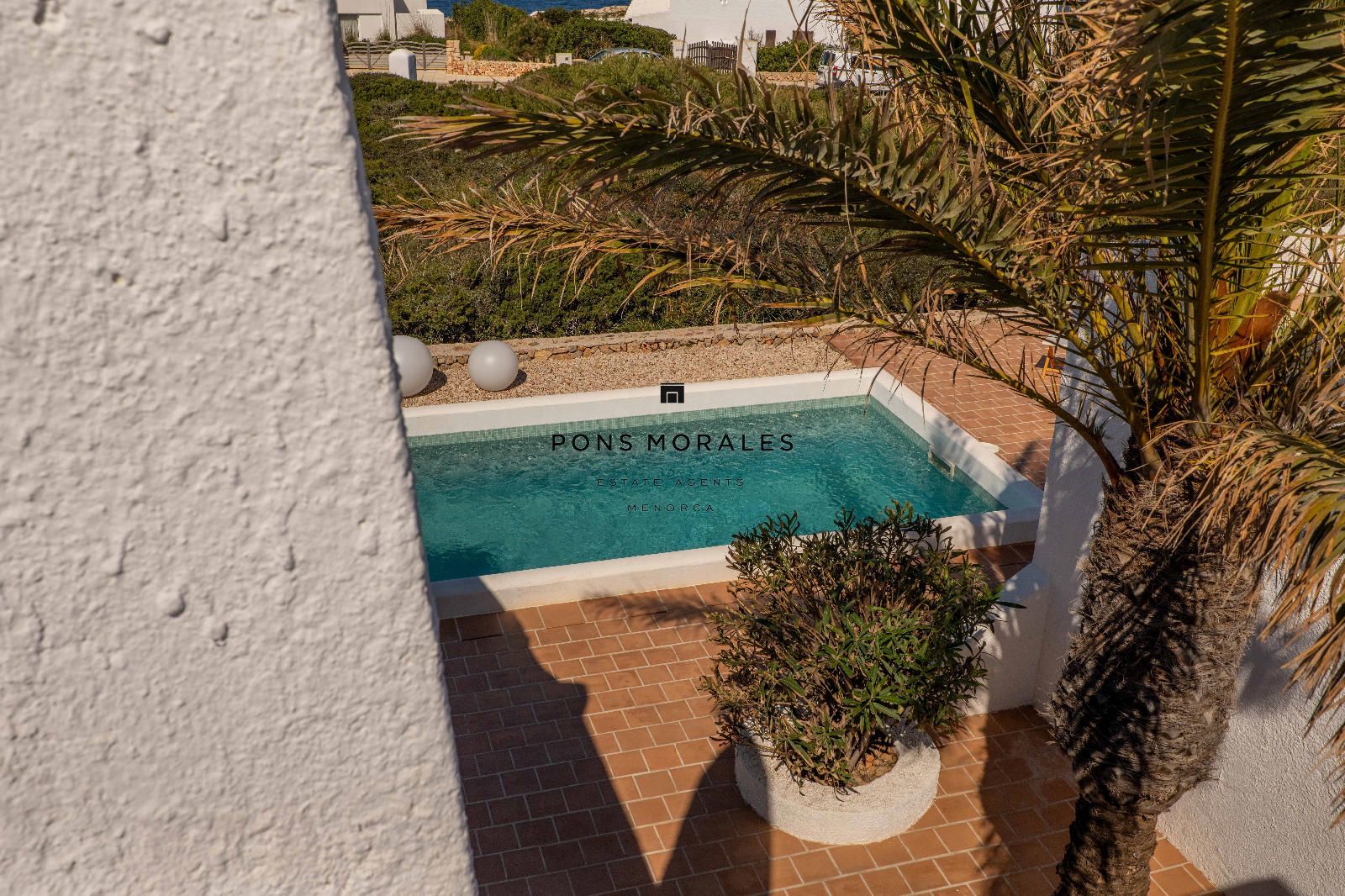 Depuis le salon-salle à manger, on accède à un splendide espace extérieur avec porche, solarium, piscine privée et barbecue, parfait pour profiter de moments inoubliables dans un cadre d’intimité absolue. La propriété se distingue également par sa magnifique terrasse sur le toit, un lieu privilégié pour admirer de spectaculaires couchers de soleil, ainsi que par son charmant jardin de style méditerranéen minorquin, qui apporte caractère, fraîcheur et une connexion unique avec l’environnement.